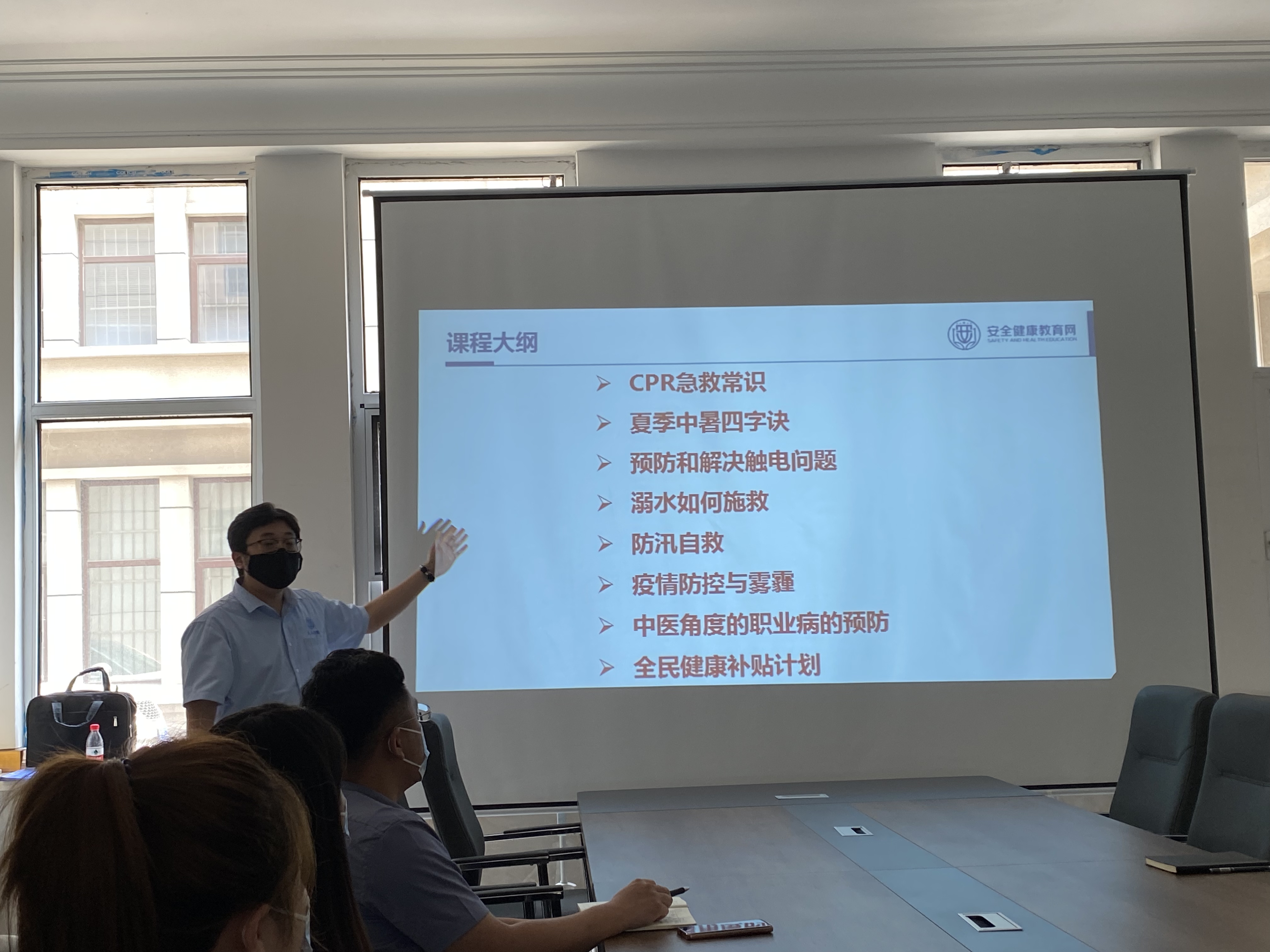 本次培训讲座在郭老师激情洋溢讲解CPR急救常识中拉开序幕。期间分别介绍了夏季中暑、溺水如何自救、疫情防控、职业病的预防等多方面知识展开。各个部门的员工都听得聚精会神,认真记录笔记,并与郭老师提问互动学习知识,对于同事们存在的问题点,郭老师也一一进行了耐心详细的解答。