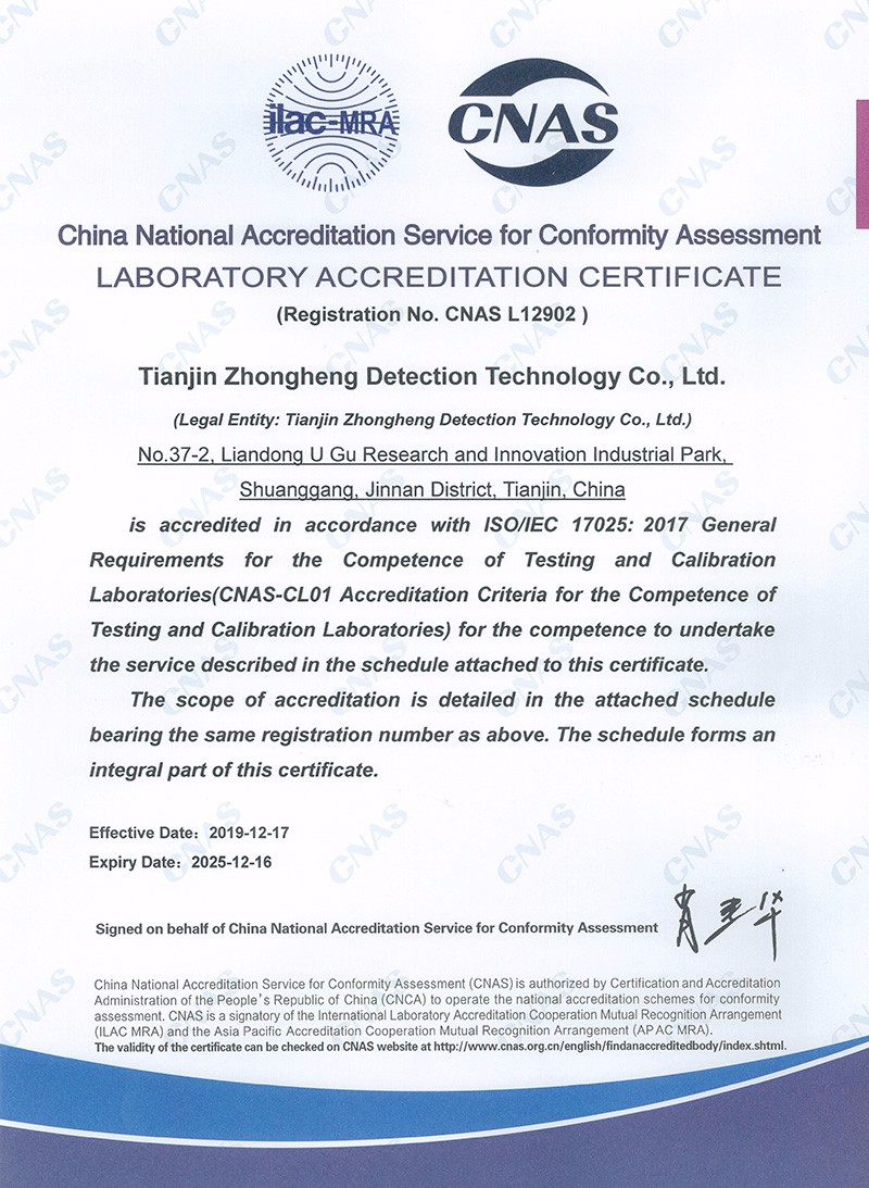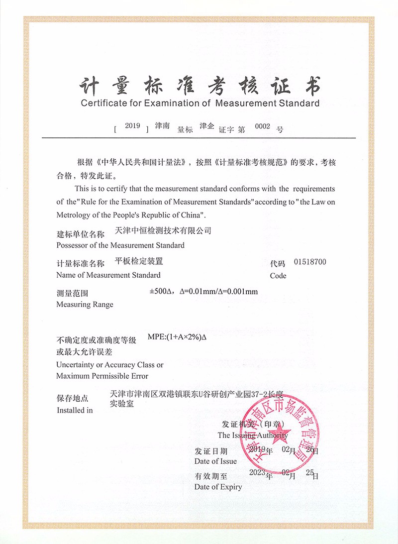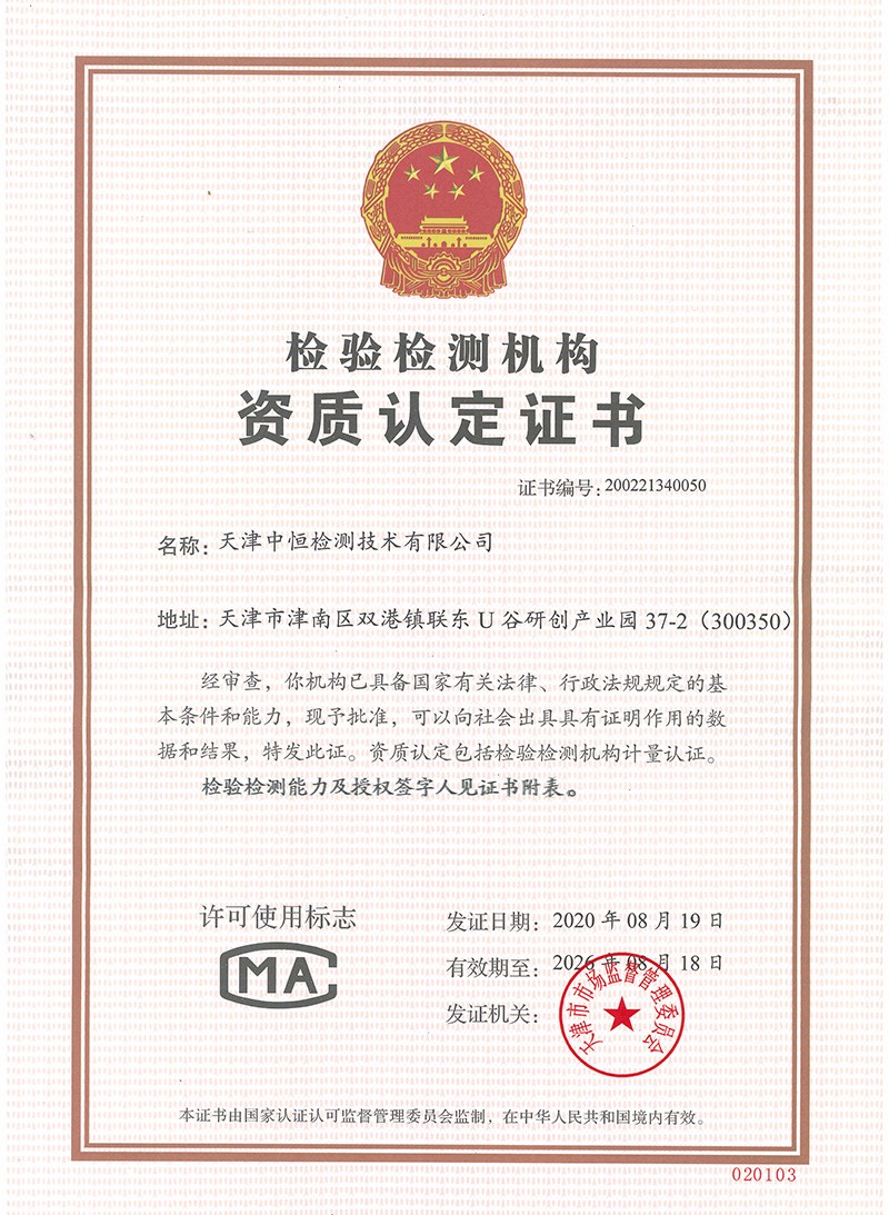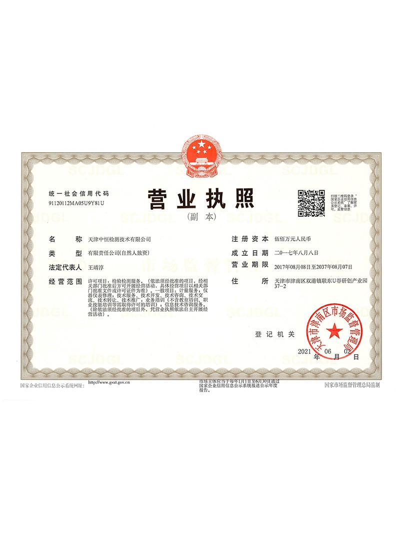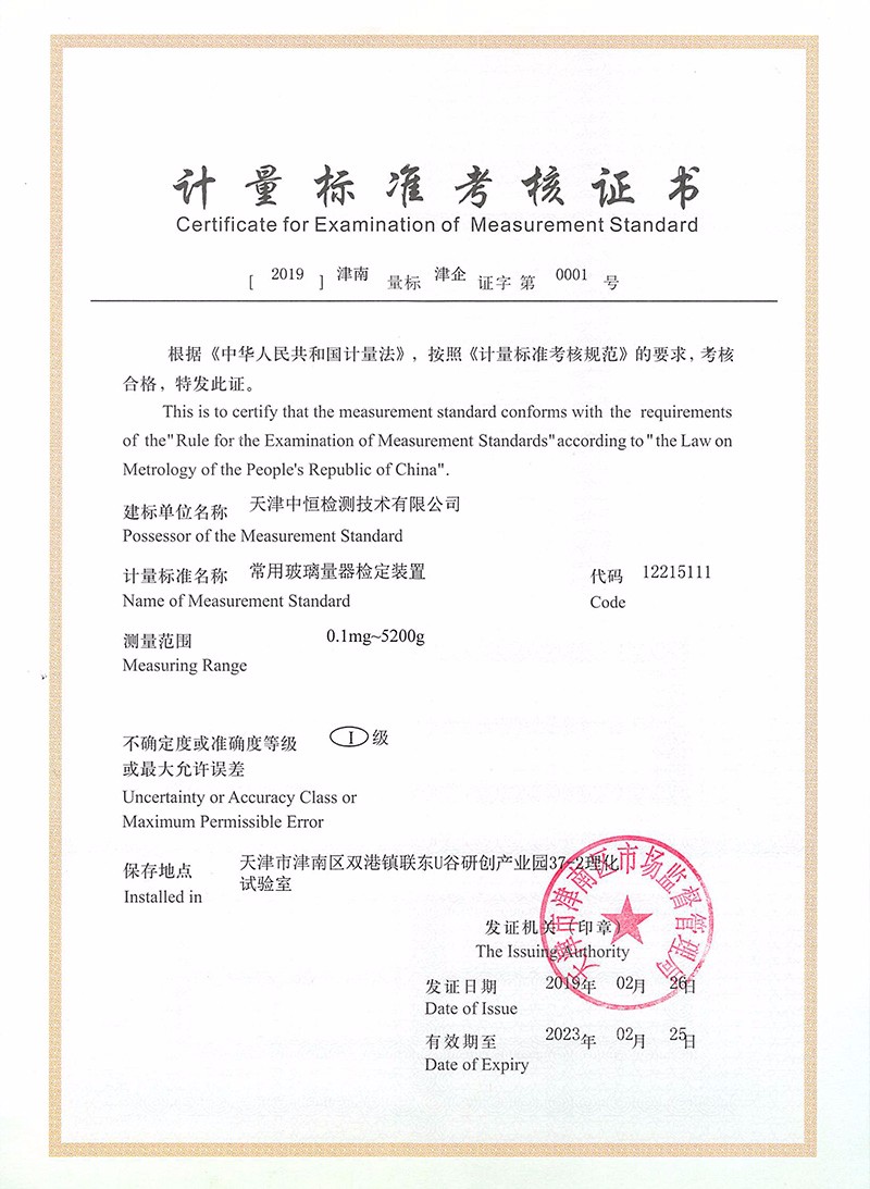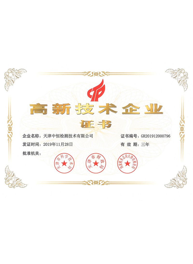 中恒检测,全称天津中恒检测技术有限公司,成立于2017年,占地面积1600平方米,是一家专业的第三方计量校准机构,主要从事计量校准、仪器维修、技术培训及实验室认可咨询等服务,并获得中国合格评定国家认可委员会(CNAS)的实验室资质认可(注册号:CNAS L12902)和检验检测机构资质认定(CMA证书编号:200221340050)公司于2019年8月获得了天津高新技术企业认定、2019年11月获得国家高新技术企业认定,并拥有软件著作权15个,实用新型专利15个,企业最高标准41项。